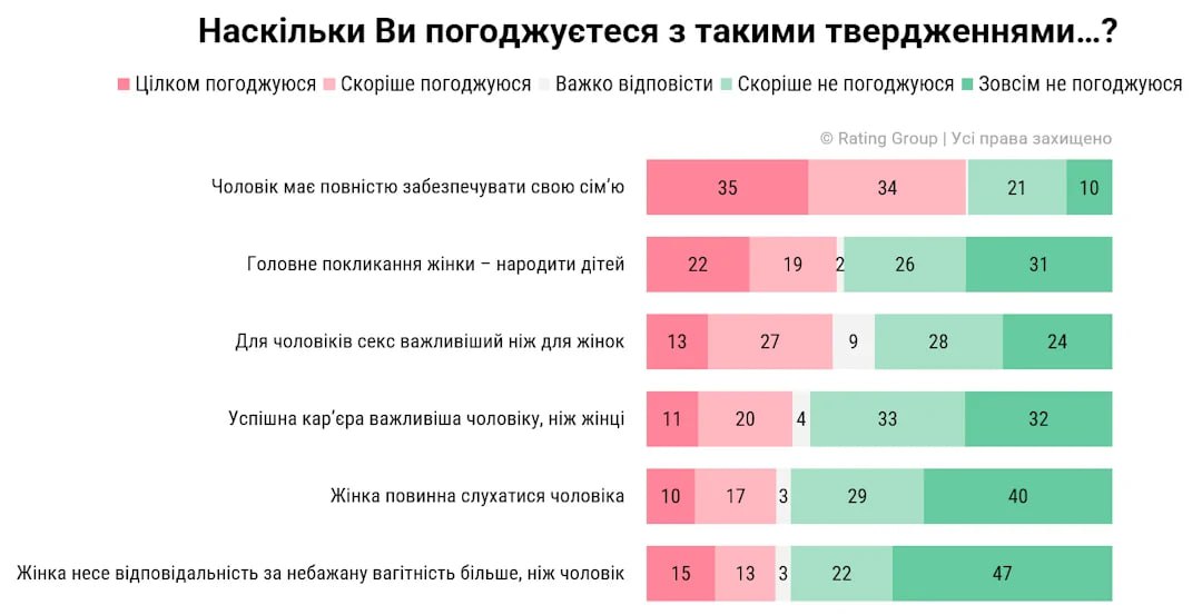 — 69% погоджуються, що чоловік має повністю забезпечувати сім’ю.