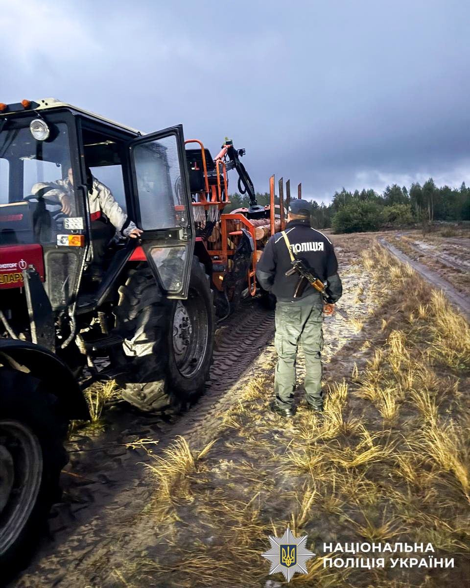 Також поліцейські у селі Зелень, Дубровицької міськгромади зупинили трактор «Беларус», керманич якого, 24-річний житель села Сварицевичі у напівпричепі перевозив лісопродукцію.