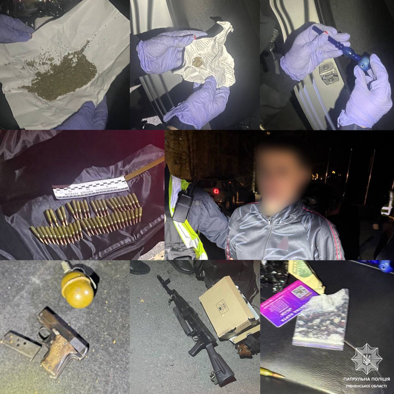 Під час цього в авто виявили автомат, пістолет, набої, гранату та пакети із речовинами, схожими на наркотичні.