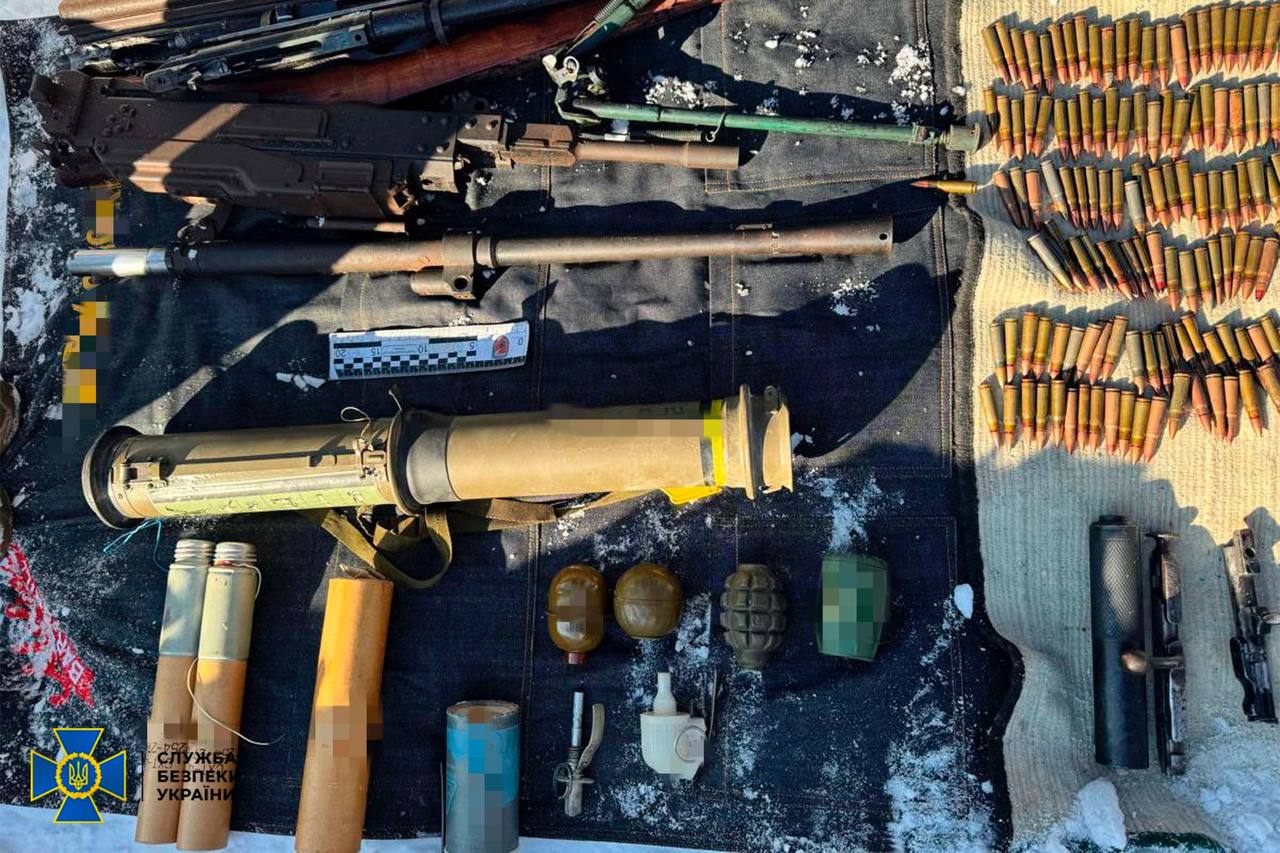 Під час перших санкціонованих обшуків у помешканні підозрюваного було виявлено та вилучено значну кількість зброї та боєприпасів.