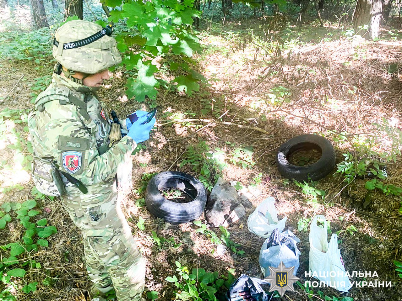 Крім того, зловмисник зізнався поліцейським, що у лісовому масиві на околиці Радивилова облаштував ще й схрон боєприпасів: фахівці вибухотехнічної служби виявили та вилучили 8 пострілів унітарного спорядження, тротилову шашку вагою 400 грамів, 3 гранати, 4 запали до ручних гранат, 3 підривачі до протитанкової міни, артилерійський снаряд, гранату до підствольного гранатомета, 5 сигнальних ракетниць.