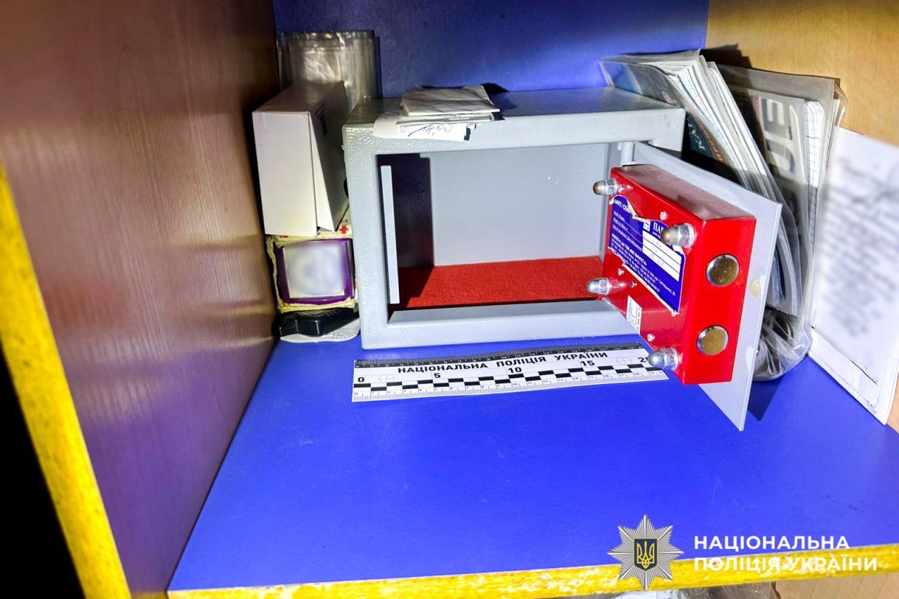 Поліцейські встановили, що невідома особа напередодні ввечері шляхом віджиму металопластикових дверей заступом і металевою трубою, проникла до магазину та з незамкненого сейфу викрала 100 тисяч гривень.