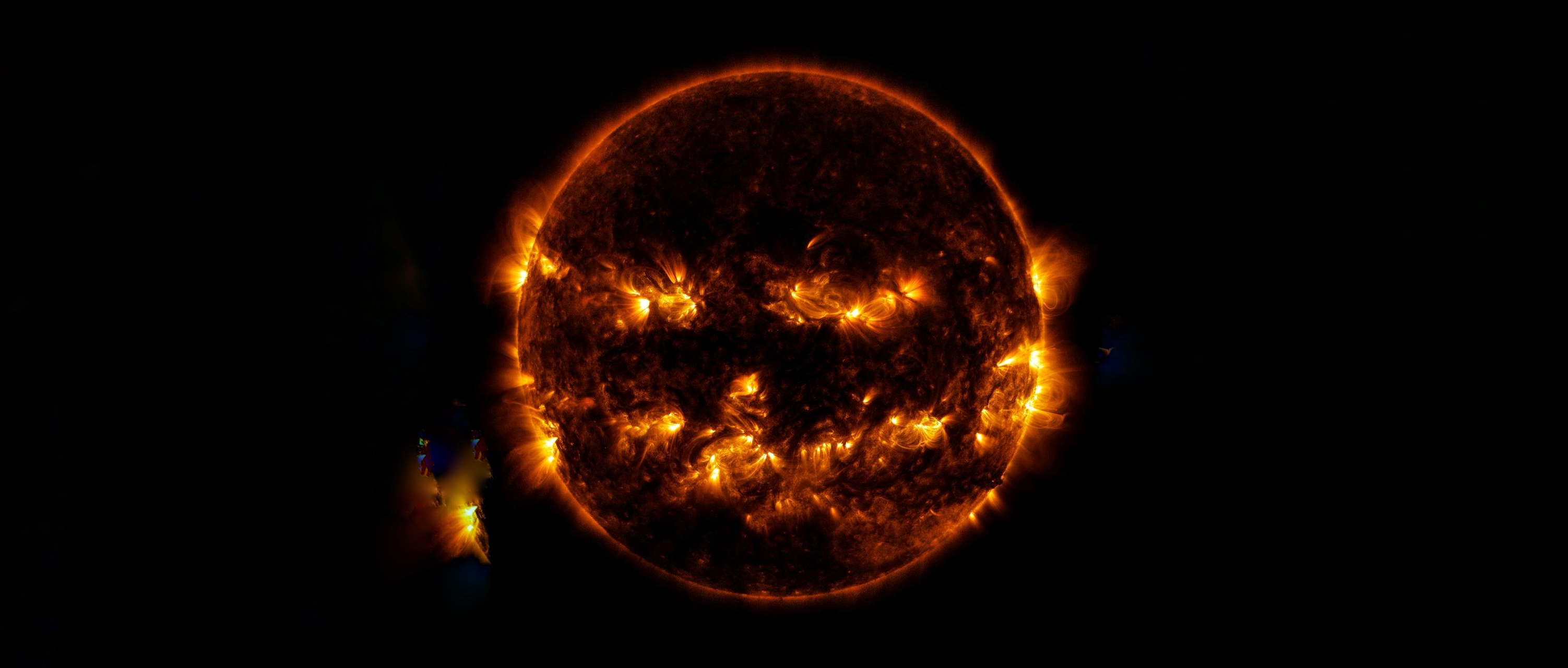 Це зображення було отримано апаратом SDO 8 жовтня 2014 року і демонструє активні регіони на поверхні нашого світила. За дивним збігом обставин, вони вишикувалися у малюнок, що дуже нагадує традиційний ліхтар Джека.